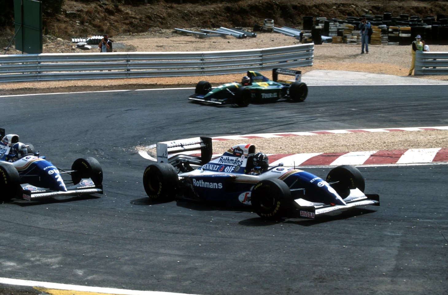 Хилла едва не выбил с трассы другой «Симтек» — Жан-Марк Гунон беспечно пересёк траекторию после одного из своих двух разворотов. Это был тревожный момент для Хилла, поскольку Култхард всё ещё был близко позади.