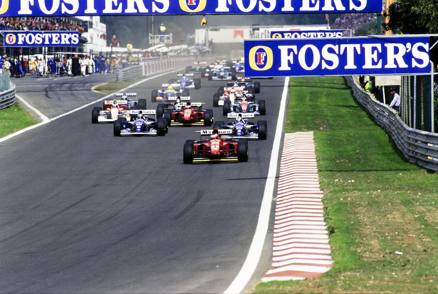 Поскольку гонщики «Уильямса» планировали останавливаться в боксах трижды, Алези, который планировал сделать две остановки, оставался впереди до 22-го круга. И когда он заехал на пит-стоп, лидировать вышли не гонщики «Уильямса», а Рубенс Баррикелло из «Джордана», впервые в своей карьере возглавивший гонку, но через три круга ему тоже пришлось заехать в боксы.