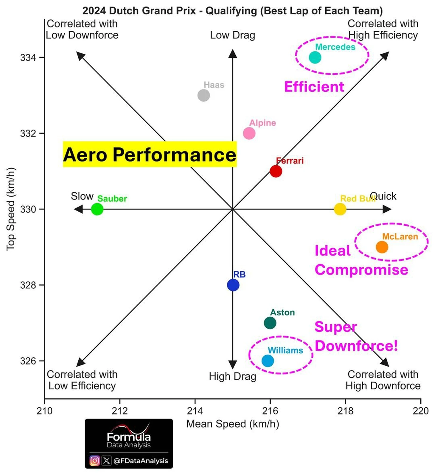 В остальном же главный фактор успеха на «Монце» – традиционно компромисс между скоростью на прямых и стабильностью в поворотах: сколько прижимной силы можно отдать в жертву максималке. По этой части обычно лучше всех выступают обладатели самых аэродинамически эффективных шасси пелотона – и на данный момент это как раз «Ред Булл» и «Макларен». Вот данные с предыдущего этапа: