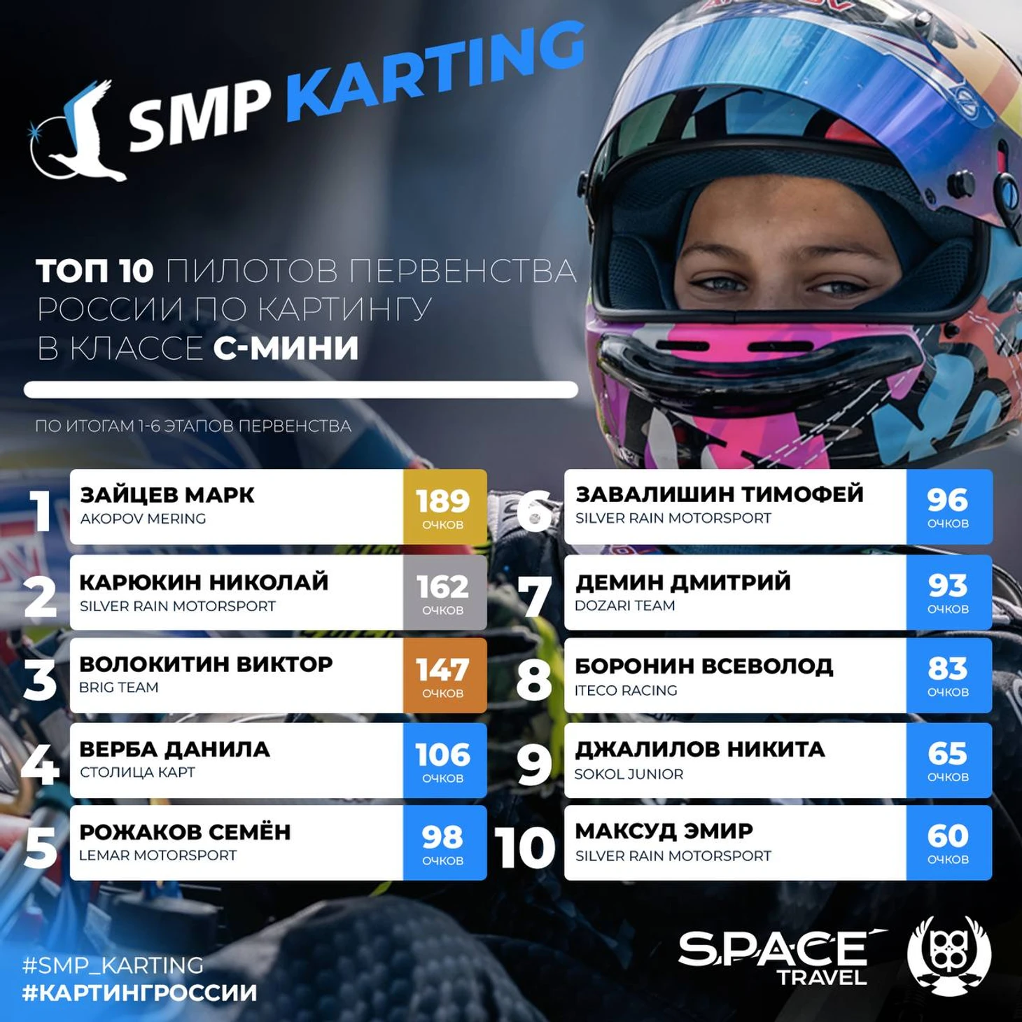 В пятерку лучших пилотов класса Мини по промежуточным итогам сезона вошли: