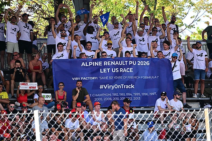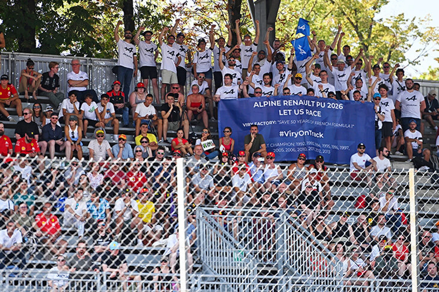 И в пятницу, 30 августа около сотни людей из моторного подразделения посетили практики перед Гран-при Италии и вывесили баннеры. Сотрудники надели белые футболки с логотипом «Альпин» и слоганом #ViryOnTrack (#ВириНаТрассе) и черные нарукавные повязки. Две группы расположились на трибунах на главной прямой и на выходе из «Параболики», вывесив баннер «с четким и неагрессивным посланием, выступающим за сохранение французского двигателя в «Ф-1».