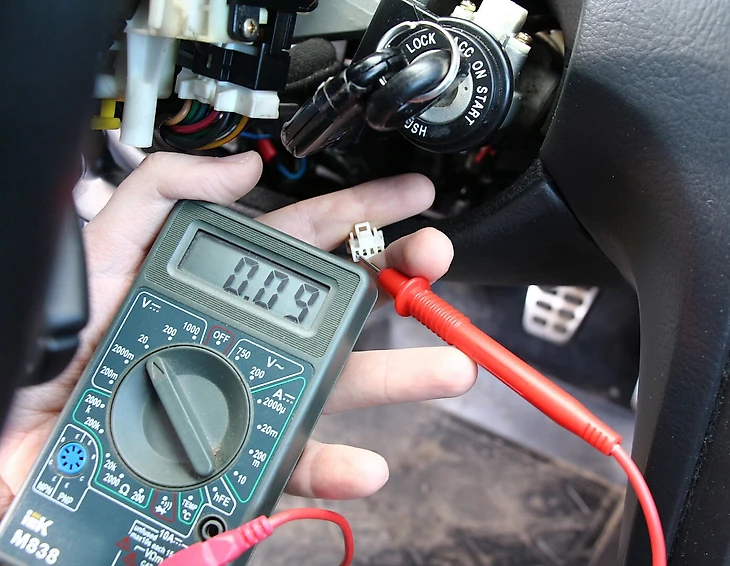В электросистеме любого автомобиля есть и другие приборы, состояние которых можно проверить при помощи мультиметра. Под капотом множество датчиков и катушек. Для проверки нужно завести мотор, подсоединить щуп черного цвета к черной клемме, а красным проверить колодку. Если на экране меняются показания, значит, все в порядке, — есть питание, проводка находится в исправном состоянии. Часто случается, что перегорает лампочка. Нужно включить зажигание, снять колодку, подключить мультиметр. Если на дисплее появились цифры, значит, ток поступает исправно. Меняем лампочку на новую и забываем о проблеме.