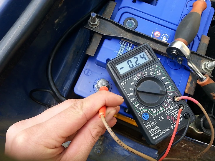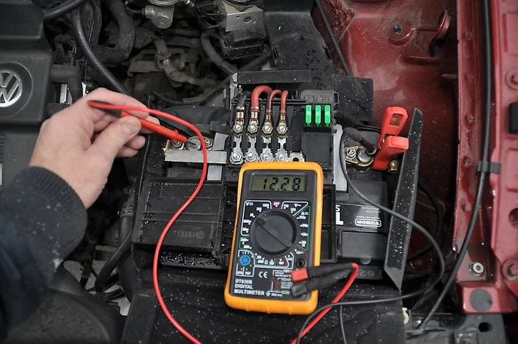 Переходим к следующему этапу. Предположим, что аккумуляторная батарея заряжена. Оставляем все щупы в том же положении, заводим мотор и включаем по максимуму разные потребители энергии: свет, музыку, фары, кондиционер и т.д. Если показатели на экране падают, то проблема с генератором, аккумулятор не будет заражаться. Если же зафиксирован значительный рост, например, больше 15,5 вольт, то это тоже плохо. Происходит перезаряд и, значит, узел неисправен. Диапазон, в котором все в норме, должен быть от 14 до 15,5 вольт. Если на дисплее высветилась требуемое число, значит, все в порядке.