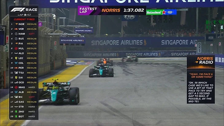 В команде поинтересовались у Норриса, как ему темп, и сказали, что было бы желательно чуть-чуть прибавить и уехать от Ферстаппена на 5 секунд, чтобы чувствовать себя комфортно.