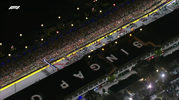Гонщики отправились на прогревочный круг и скоро начнут выстраиваться на стартовой решетке. Все готово к началу Гран-при Сингапура.