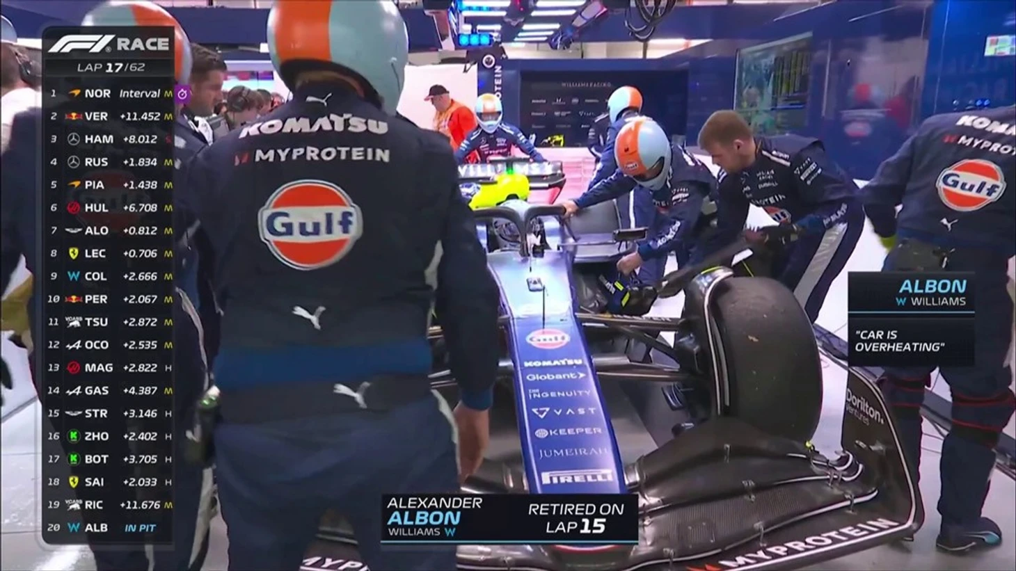 Тем временем, в «Уильямсе» подтвердили причину схода Албона. Все дело было в перегреве силовой установки. Точная причина перегрева пока неизвестна.