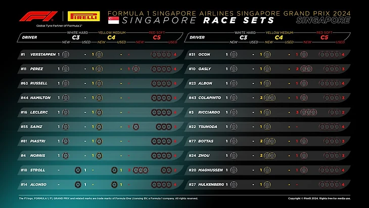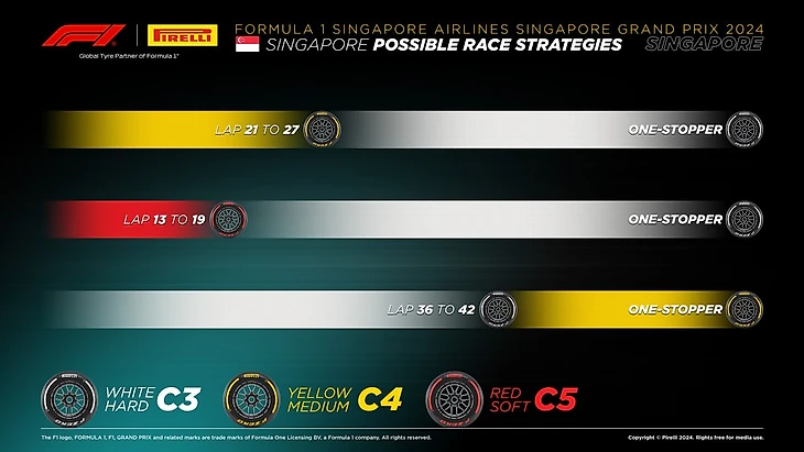 Традиционные расклады по стратегии от инженеров «Пирелли». Впрочем, именно в Сингапуре вариант с одним пит-стопом, который и предлагается, кажется вообще безальтернативным. Из-за почти полного отсутствия возможностей для обгонов позиция на трассе будет гораздо важнее преимущества в свежести шин.
