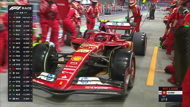 Тем временем, Леклер наконец-то свободен от Алонсо - Фернандо побывал в боксах и вернулося на трек 15-м, перейдя на «хард».
