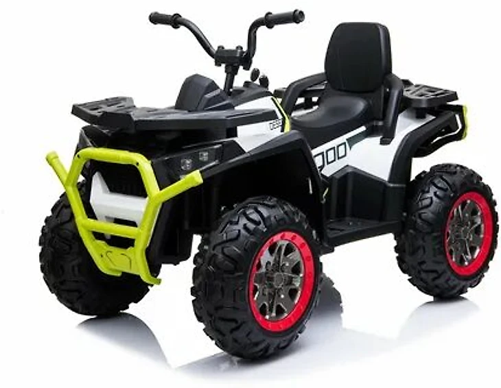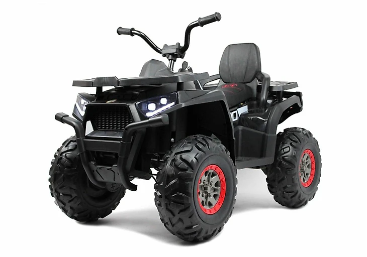 Кататься на этой модели можно полтора часа, что вполне хватит для даже небольшой доли адреналина, правда, заряжать батарею потом придется довольно долго, около десяти часов. Есть передний и задний ход, разъем USB позволяет подключать различные гаджеты. Фары освещения позволяют кататься на квадроцикле и в темное время суток. Внешнее управление с пульта тоже большой плюс. Водитель у такой модели всего один, иногда при поворотах может возникнуть значительный люфт руля, нужно быть аккуратными.