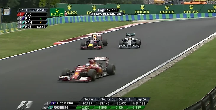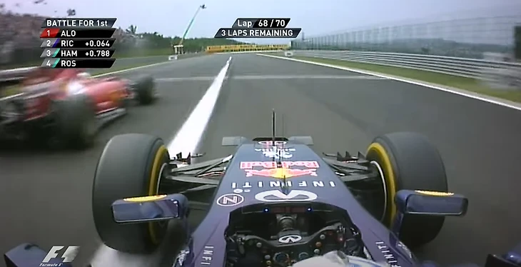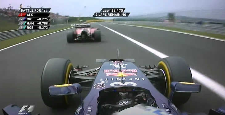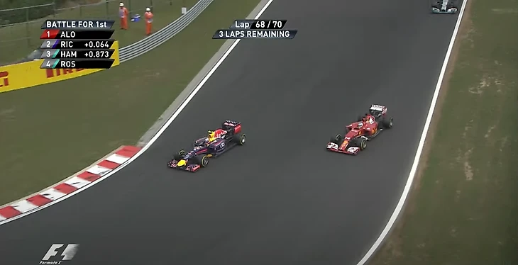 Уже на следующем этапе в Венгрии Риккардо и Алонсо вновь встретились на трассе. Только на этот раз они уже боролись не просто за увеличение количества очков, а за победу.