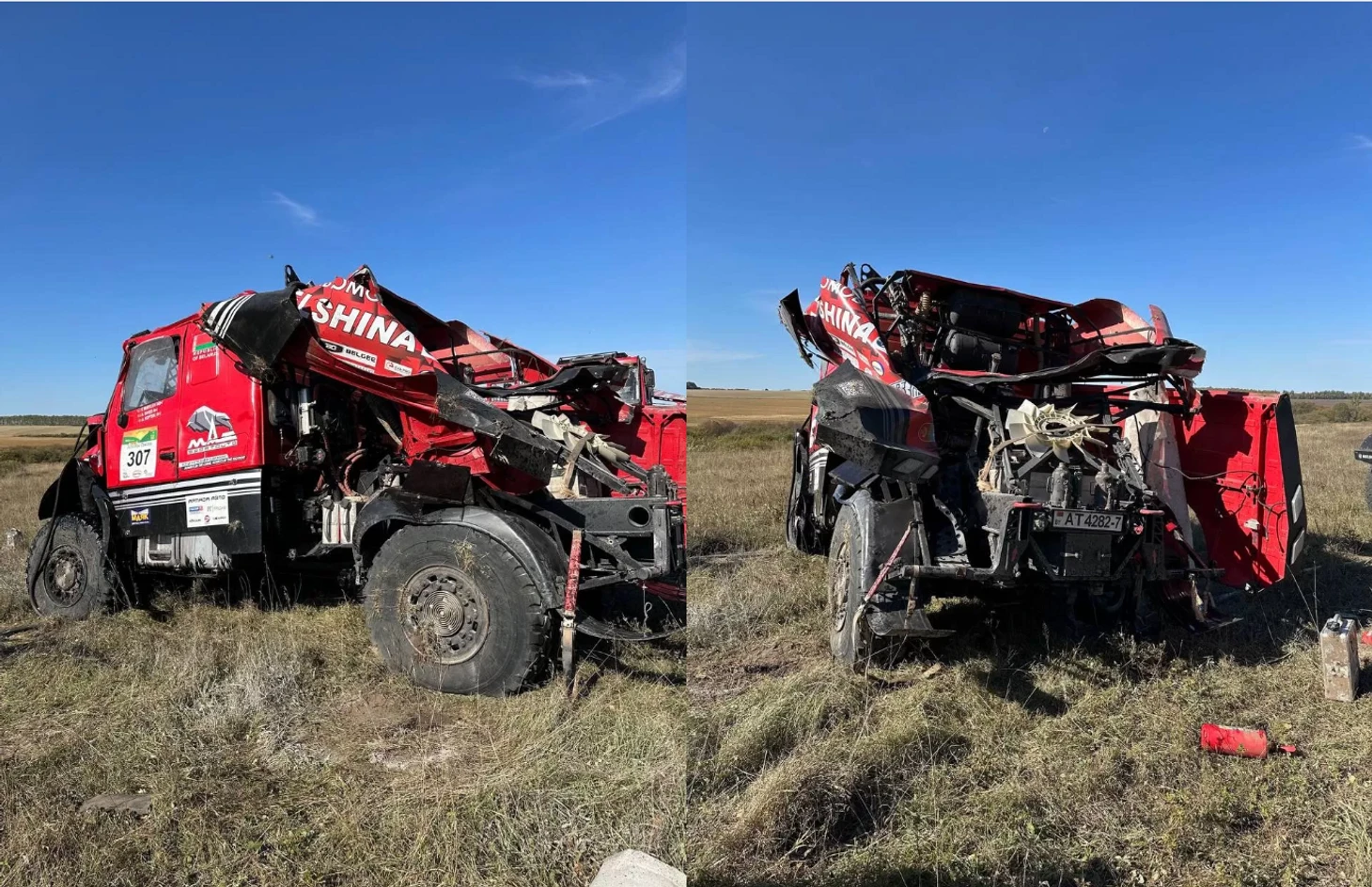 В Ульяновске экипаж Сергея Вязовича из команды «МАЗ-СПОРТавто», пытаясь выиграть лишние секунды, решил пролететь по прошлогоднему пути, несмотря на прописанный в «легенде» овраг. Следом туда же устремился и экипаж Бориса Гадасина. А грузовик Виталия Мурылева из той же «МАЗ-СПОРТавто», уже в Саранске, на заключительном этапе, перевернулся. Экипаж был госпитализирован, но жизням ребят ничто не угрожает. Желаем коллективу скорейшего выздоровления!