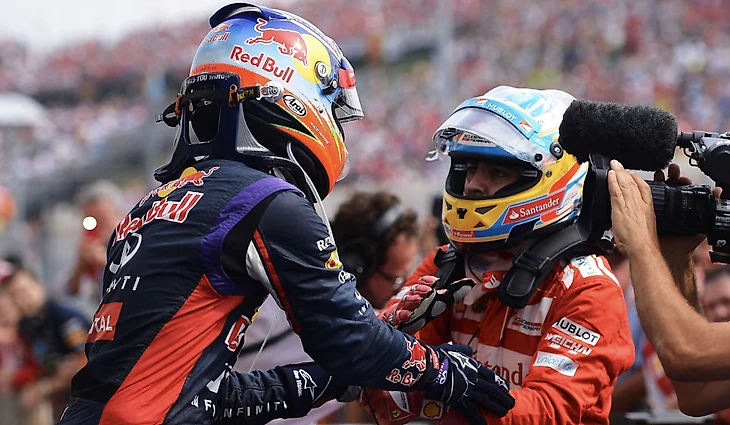 «Он выехал из боксов на свежих шинах, я к тому моменту был на уже изношенных, так что он должен был быть намного быстрее меня», — говорит Риккардо. «Фернандо тоже это понимал, поэтому он обогнал меня еще до торможения перед шпилькой, а потом вернулся на гоночную траекторию, не думая, что я буду сопротивляться. Обычно в этом случае вы не сопротивляетесь, потому что вы думаете: «Ладно, я просто потеряю время, если продолжу с ним бороться». У него были шины лучше, поэтому у него своя гонка, а у меня – своя. Но я тогда подумал: «Не тут то было», это был мой шанс побороться, когда от меня этого не ждут, и что-то показать. Я сразу же обогнал его обратно в шпильке. Он прошел меня на выходе из шпильки, я сразу же обогнал его в следующем повороте, и я думаю, что тогда он внезапно подумал: «О, этот маленький засранец не собирается сдаваться! Что он делает? Он ведь знает, что проиграет эту борьбу». Я подумал: «Ну, посмотрим, как долго я смогу продержаться». Мы боролись около четырех кругов, и это было очень неплохо и неожиданно. Даже если это, вероятно, расстроило Фернандо, потому что он терял время и не мог побороться еще с кем-то впереди, я думаю, что в глубине души он, скорее всего, наслаждался борьбой и, может, уважал меня за то, что я сопротивлялся, когда мне не следовало этого делать».