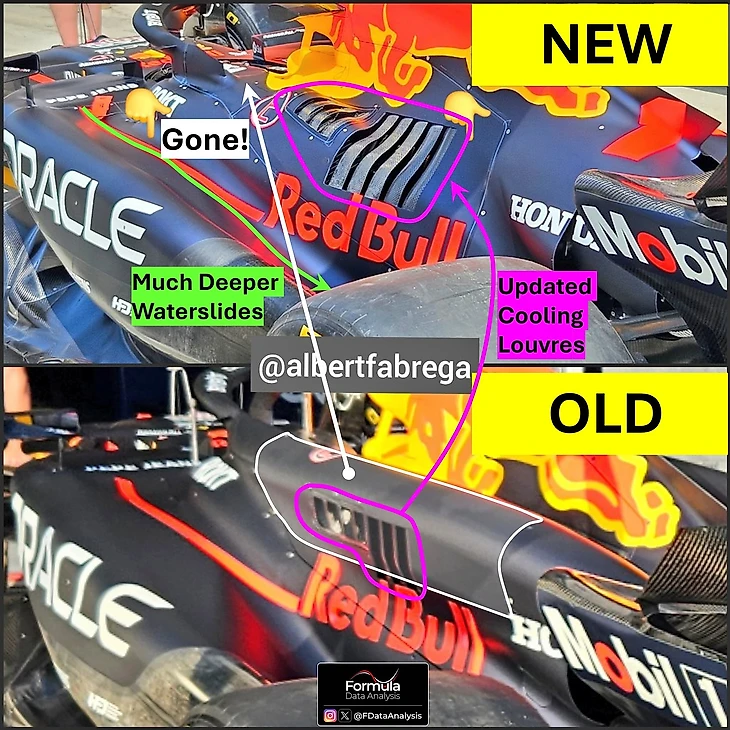 Возможно, будет немного несправедливо сказать, что большая модернизация «Ред Булл» «для повышения прижимной силы» была неудачной, поскольку она осталась на машине (кроме трасс с низкой прижимной силой) и уж точно не сделала машину хуже. Но было бы справедливо подчеркнуть: она не принесла значительного прироста эффективности, который предполагался при моделировании, и не позволила приблизиться к конкурентам.