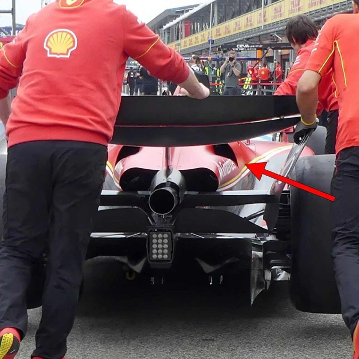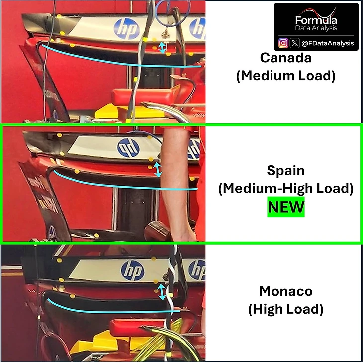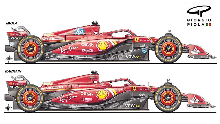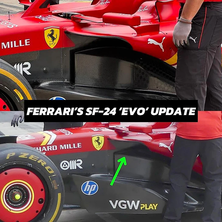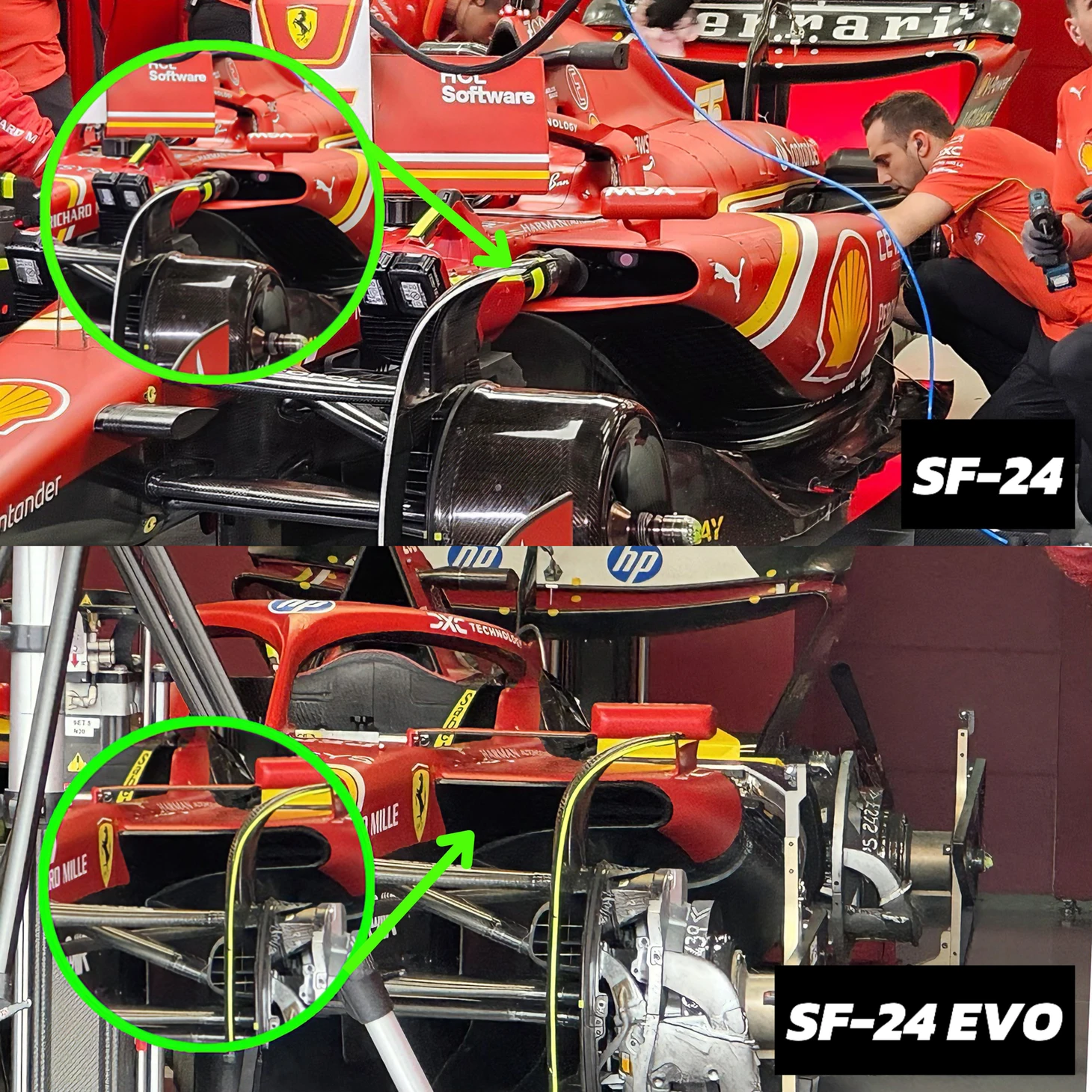 Суть переделки «Феррари» заключалась в более оптимальном компромиссе между аэродинамическими целями и охлаждением – аэродинамические характеристики болида улучшились: и окно настроек, и общая эффективность шасси (повышение скорости на прямых при той же мощности мотора, расходе топлива и угле атаки антикрыльев).