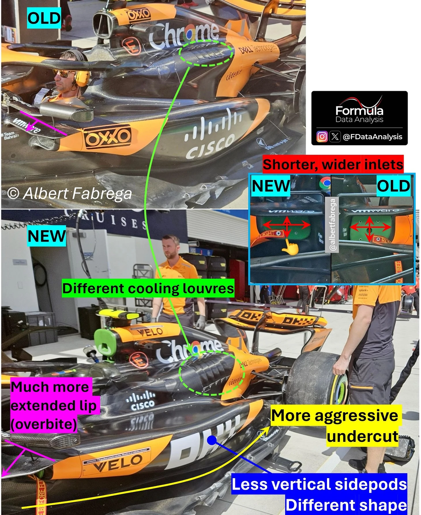 Модернизация «Макларена» в Майами, по сути, добавила больше прижимной силы к и без того хорошо сбалансированному болиду. «Мерседес» же исправлял основной аэродинамический недостаток своей машины, и это изменение дало отличные результаты.