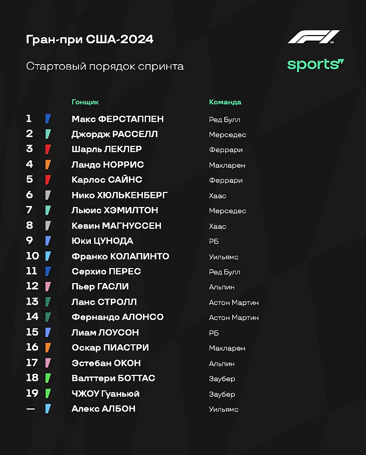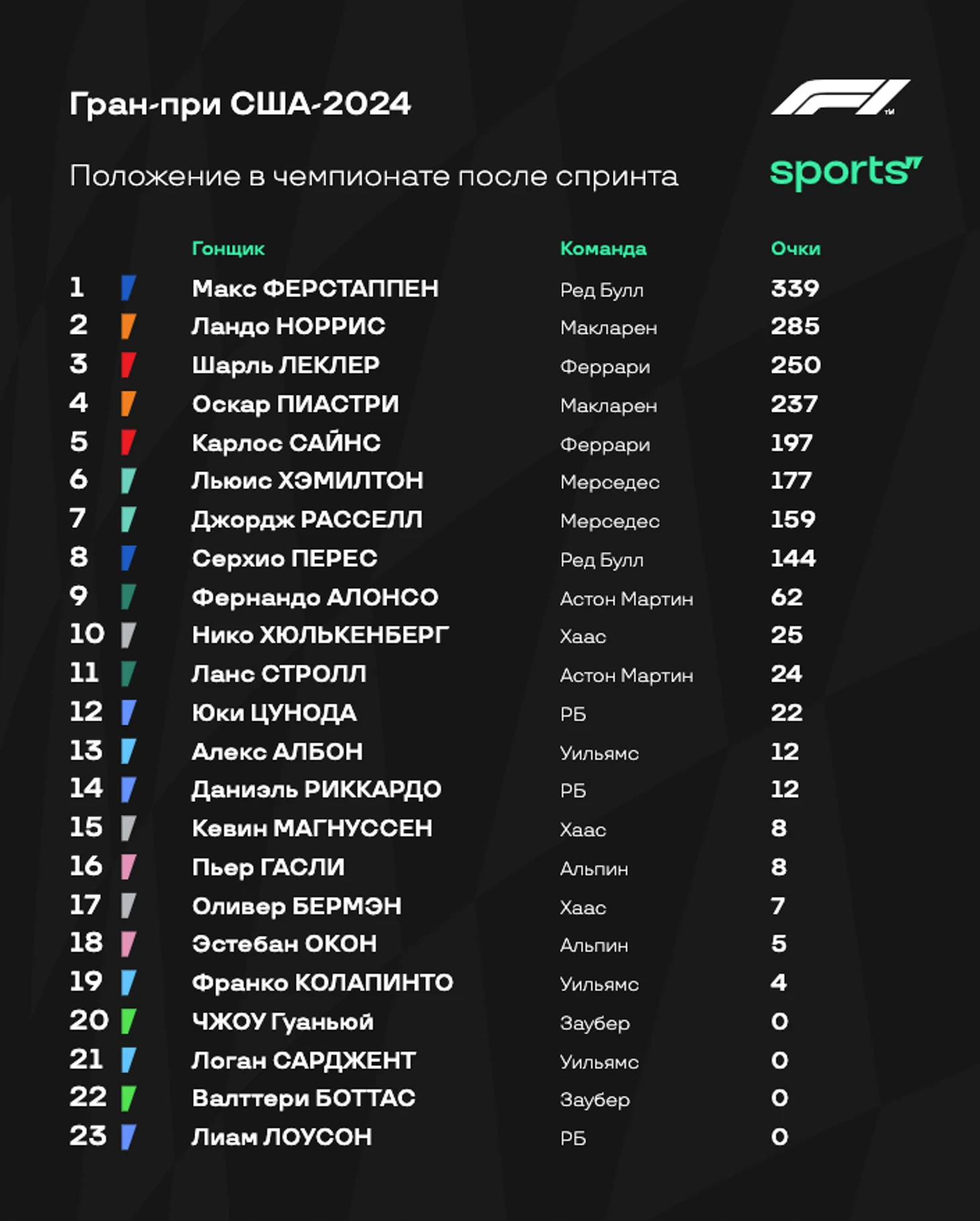 В ночь с 19 на 20 октября состоятся спринт и квалификация к 19-му этапу «Формулы-1» сезона-2024, Гран-при США.
