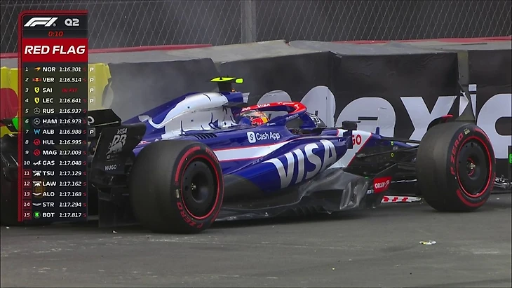 Упс. Второй сегмент квалификации заканчивается аварией Юки Цуноды и красными флагами.
