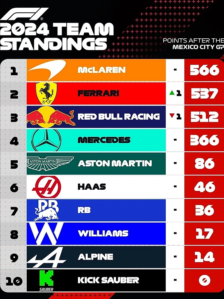 Что касается Кубка конструкторов, то Red Bull уверенно лидирует с февраля, а Макларен частично догнал их. Разрыв в двадцать девять очков за четыре гонки и два спринта до конца чемпионата — это более чем реально для изменения положения дел.