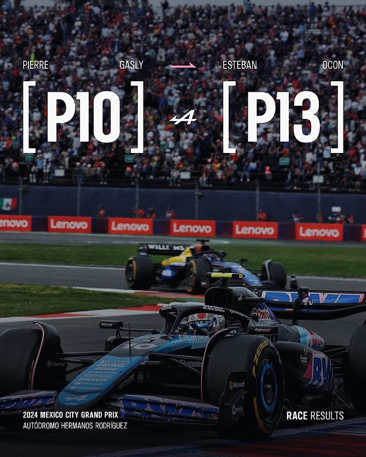 Альпин также остается теоретическим соперником в борьбе за очки, но они скорее конкурируют с Вильямсом, так как слишком далеко от Хааса. Во второй раз подряд команда показала отличную квалификацию и хорошую гонку. На этот раз, хотя седьмое и восьмое места не удалось занять, десятое место было удержано. Что касается Окона, его стартовая стратегия не сработала, и он финишировал на тринадцатом месте, хотя под конец смог обогнать Боттаса. В отличие от Гасли, он остался недоволен результатом.
