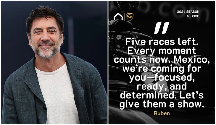 «Осталось пять гонок. Сейчас важен каждый момент. Мексика, мы идем за тобой — сосредоточенные, готовые и решительные. Давайте устроим им шоу», — заявил глава APXGP, роль которого играет Хавьер Бардем.