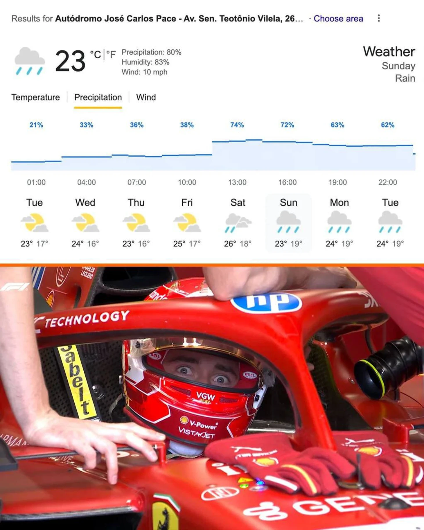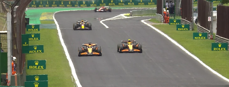 • На 5-м круге Норрис передал по радио, что он быстрее – хотя комментаторы предполагали, что Пиастри просто тащит Ландо в крыле DRS, чтобы Леклер его не настиг. На 6-м круге ответ мостика «Макларена» подтвердил тактику обороны от «Феррари». А на 7-м круге Норрис высказался: «Не знаю, что тут делаю. Думал, мы это обсуждали». На 8-м круге ему предложили продолжать работать как работал, а Норрис – «Да, как угодно».