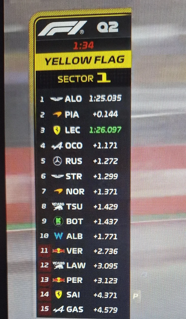 Во-первых, в момент желтых флагов до конца сессии оставалось всего полторы минуты (1:34). Во-вторых, Шарль Леклер успел улучшить круг, поднявшись на третью позицию и сдвинув Ферстаппена на одиннадцатую. Даже если бы красные флаги показали бы быстро, то у Макса все равно бы не осталось времени на лучшую попытку. Тем более, что в тот момент он уступал своему лучшему результату.