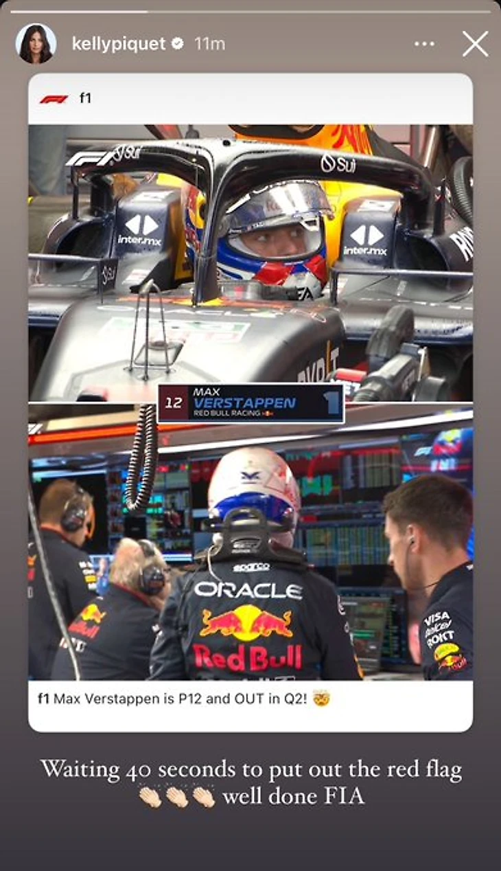 Теорию поддержала девушка Макса Келли Пике: выложила скриншот с 12-й позицией чемпиона мира и сопроводила саркастическим комментарием: «Ждать 40 секунд и вывесить красный флаг. Отлично сработано, ФИА!»