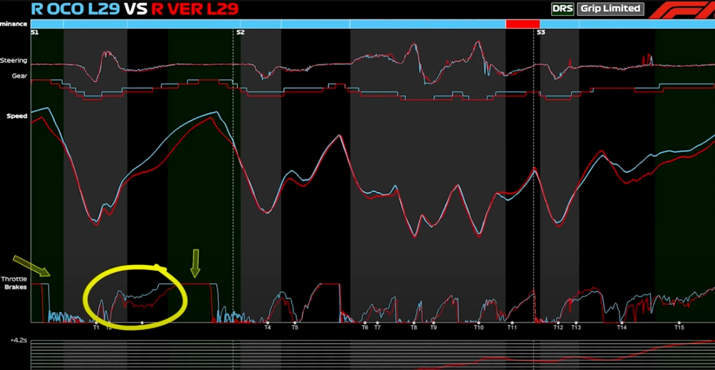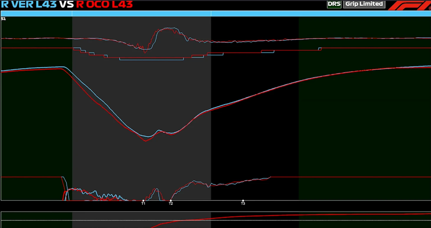 В теории обгон Пиастри должен был стать серьезной проблемой, учитывая, что австралиец является напарником по команде главного конкурента Макса в борьбе за титул. Однако в данном случае Максу в 1-м повороте удалось затормозить на просто невероятные 43 метра позже, чем пилот «Макларена» – и совершить наиболее успешный обгон с потерей минимума времени.