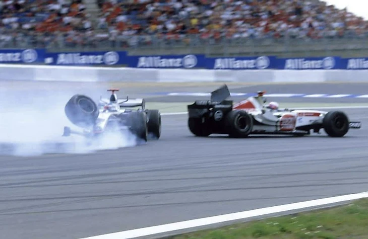 В день, когда нужно было использовать правильные шины в нужное время и не допустить ни одной ошибки, Монтойя выбыл из борьбы за чемпионство из-за штрафа за столкновение с Рубенсом Баррикелло.