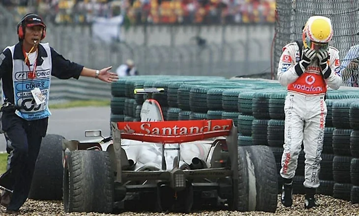 Китай, 2007 – Хэмилтон паркуется в гравии