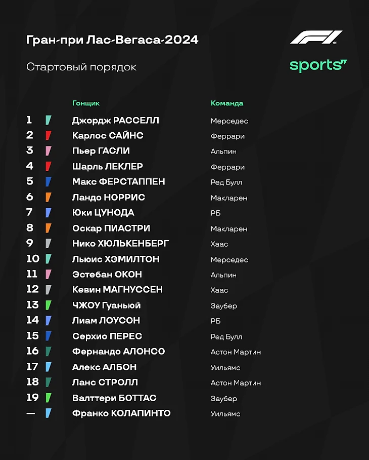 Давайте еще раз вспомним, что Максу нужно для досрочного титула в Вегасе. Итак, Ферстаппен станет четырехкратным чемпионом уже сегодня, если: