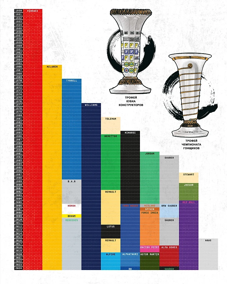 Задача всегда состоит в том, чтобы победить. И продолжать побеждать. А для тех, кто этого не делает – бороться, догонять, перегонять, а затем начать свою собственную эру господства, взяв два крупнейших приза в автоспорте: чемпионат мира среди пилотов «Формулы-1» и чемпионат мира среди конструкторов «Формулы-1». Но что нужно сделать, чтобы стать лучшим? Кто самые великие люди всех времен? Как этот вид спорта стал таким глобальным явлением, каким он и является, и что его ждет в будущем?