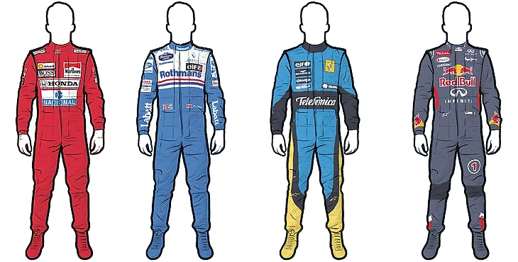 Разработка номекса позволила сделать костюмы более легкими и тонкими, а также повысить их огнестойкость. Спонсорские вышитые нашивки заменяются нарисованными или напечатанными наклейками для экономии веса и снижения пожароопасности