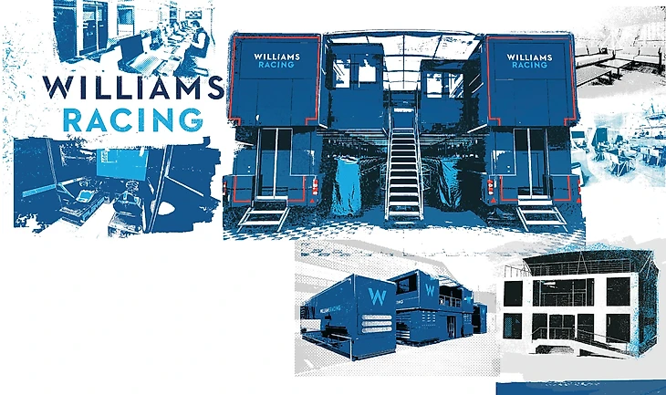 В выходные «Уильямс» использует четыре грузовика для хранения запчастей и офисов, а также для создания фундамента для своего домика на дереве. Инженерная комната оборудована таким образом, чтобы создать для команды идеальную рабочую обстановку для координации стратегии.