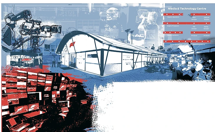 Существует два основных центра операций. В Центре медиа и технологий (M&TC), расположенном на Биггин-Хилл в Англии, развернута крупнейшая в мире система удаленного производства. 140 сотрудников обеспечивают 120 одновременных прямых видеопотоков с трассы, где расположен технический центр соревнований (ETC). За 10 дней до начала соревнований ETC, в котором работает 750 единиц оборудования и 75 сотрудников, строится в пределах трассы.