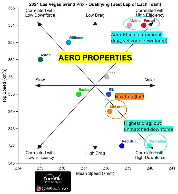 На быстром круге влияла еще и готовность рисковать – и здесь преимущество получали самые смелые и отчаянные (вроде Леклера и Ферстаппена), либо точные и расчетливые (вроде Расселла). Особенно в условиях достаточно сильного пустынного ветра со скоростью 24 км/ч – такие порывы снимают до 10% и без того невысокой прижимной силы.