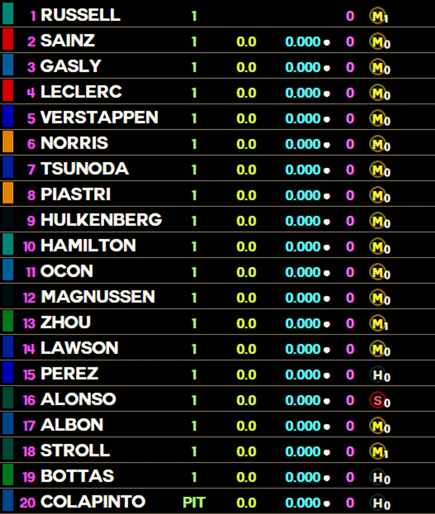 • Лидер Расселл побывал в боксах на 33-м круге и сохранил первое место. Пиастри обогнал Чжоу и забрал 8-е место.