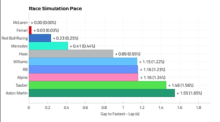 У «Феррари» при разгруженном антикрыле часто появляются проблемы со стабильным прогревом, потому их результат целиком и полностью зависел от работы пилотов по подготовке покрышек к конкретному кругу и конкретному отрезку. Зато в остальном конфигурация трассы подходит им больше всех конкурентов.