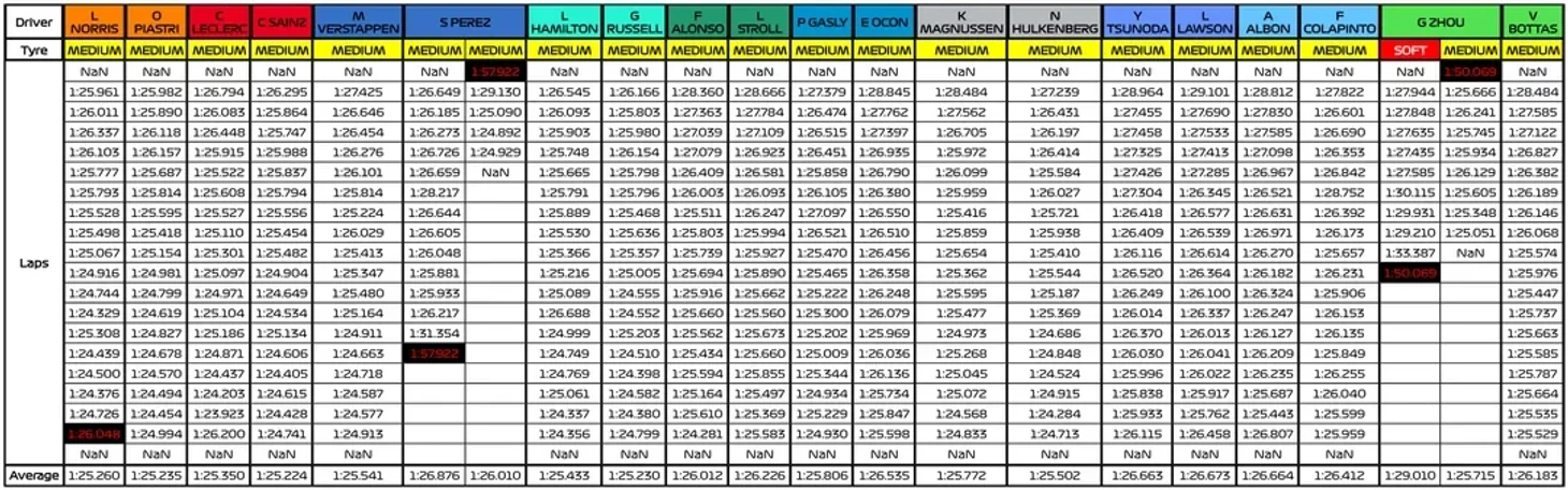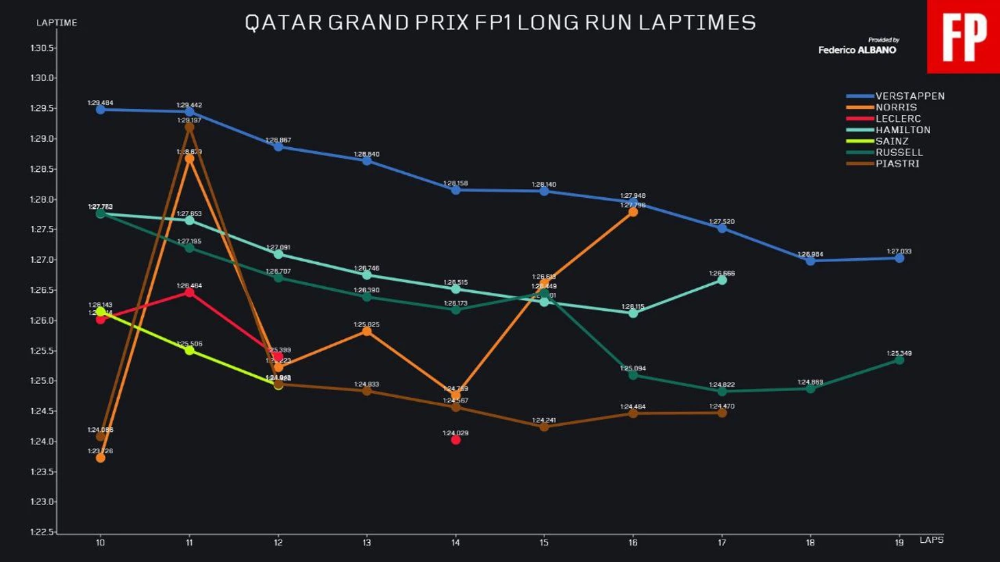 • На 7-м круге Норрис передал по радио, что пытается поделиться зоной DRS с Пиастри на каждом круге для ускорения напарника на прямой. Но на извилистом «Лусаиле» с быстрыми и среднескоростными поворотами Ландо скорее мешал Оскару «грязным воздухом», снимая ценную прижимную силу.