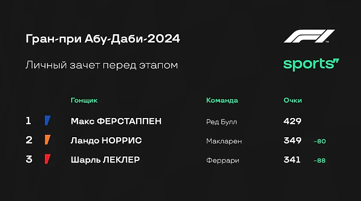 В личном зачете неожиданная битва за вице-чемпионство, которое, казалось, в кармане у Норриса. Для Ландо это достижение станет первым в карьере, для Леклера – вторым. Полные расклады в чемпионатах пилотов и команд – тут.