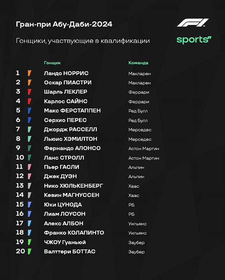 7 декабря состоится квалификация к заключительному, 24-му этапу «Формулы-1» сезона-2024, Гран-при Абу-Даби.