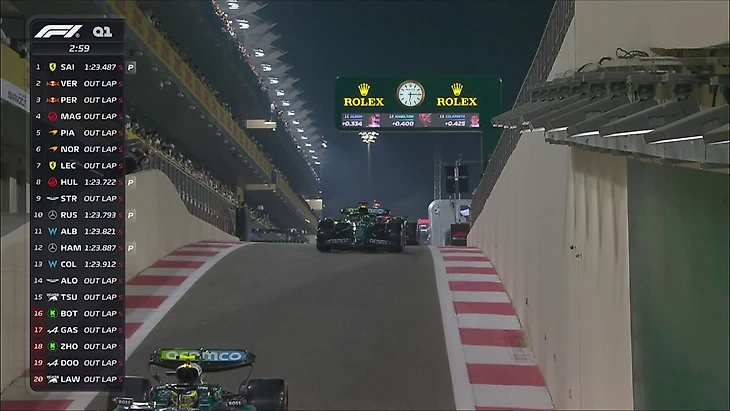 Команды вернулись в боксы и готовятся ко второй попытке. Пока в зоне вылета два «Уильямса» (Албон и Колапинто потеряют по 5 позиций на старте после замены коробки передач на обеих машинах), Лоусон, Дуэн, и Перес.