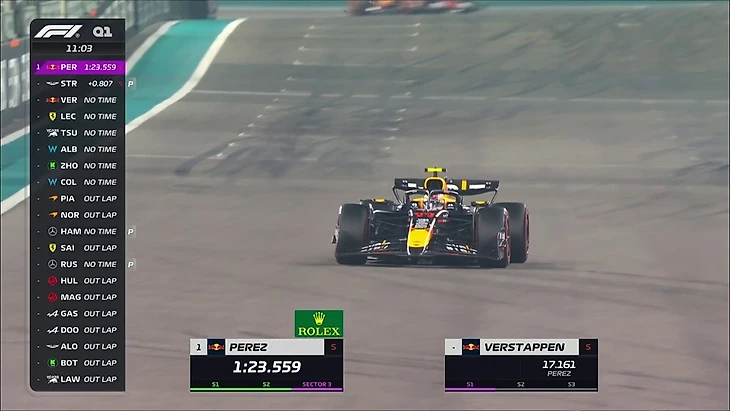 Ферстаппен проехал лучший круг квалификации на данный момент и лидирует в сессии. Норрис уступил ему 0,1 секунды, Пиастри чуть позади, остальныет - минимум в 0,4 секунды.