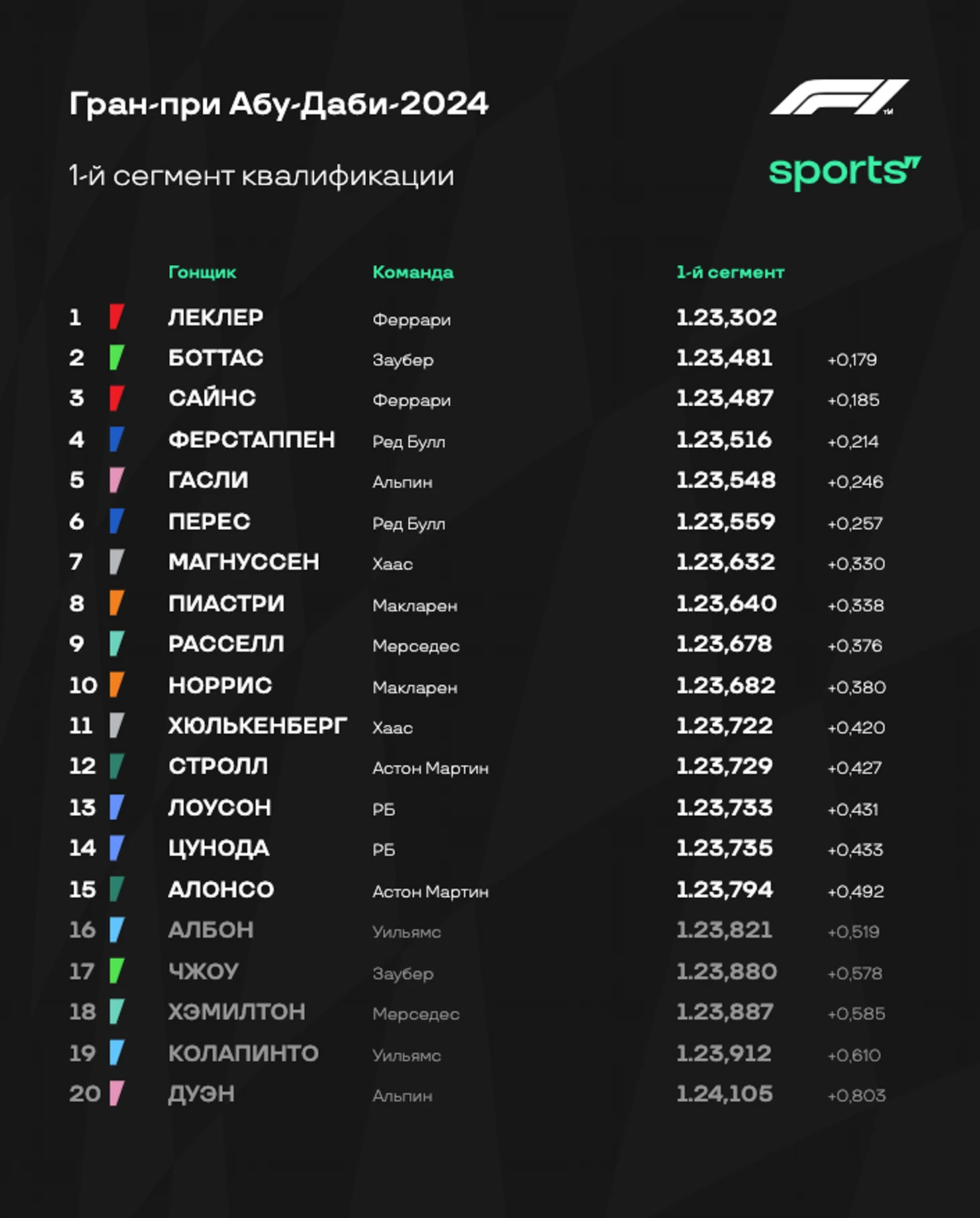 Удивительные итоги второго сегмента. Из борьбы выбыли: Цунода, Лоусон, Стролл, Леклер и Магнуссен. Боттас - в топ-10!