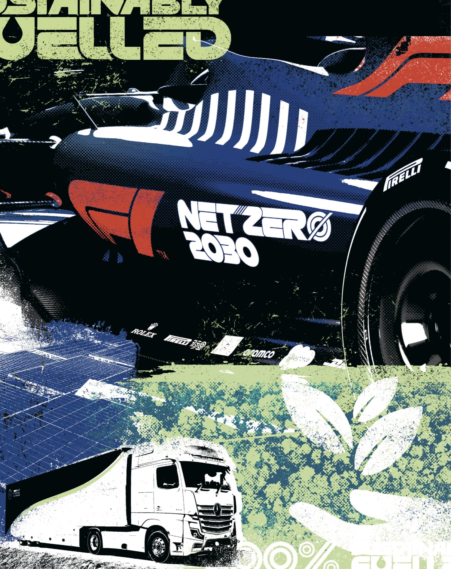 К 2030 году офисы, объекты и заводы команды должны на 100% перейти на возобновляемые источники энергии, а в других областях необходимо обеспечить надежную компенсацию выбросов углерода, чтобы свести их к нулю. В 2023 году все десять команд получат трехзвездочную экологическую аккредитацию ФИА — высший уровень признания экологической устойчивости со стороны руководящего спортивного органа.