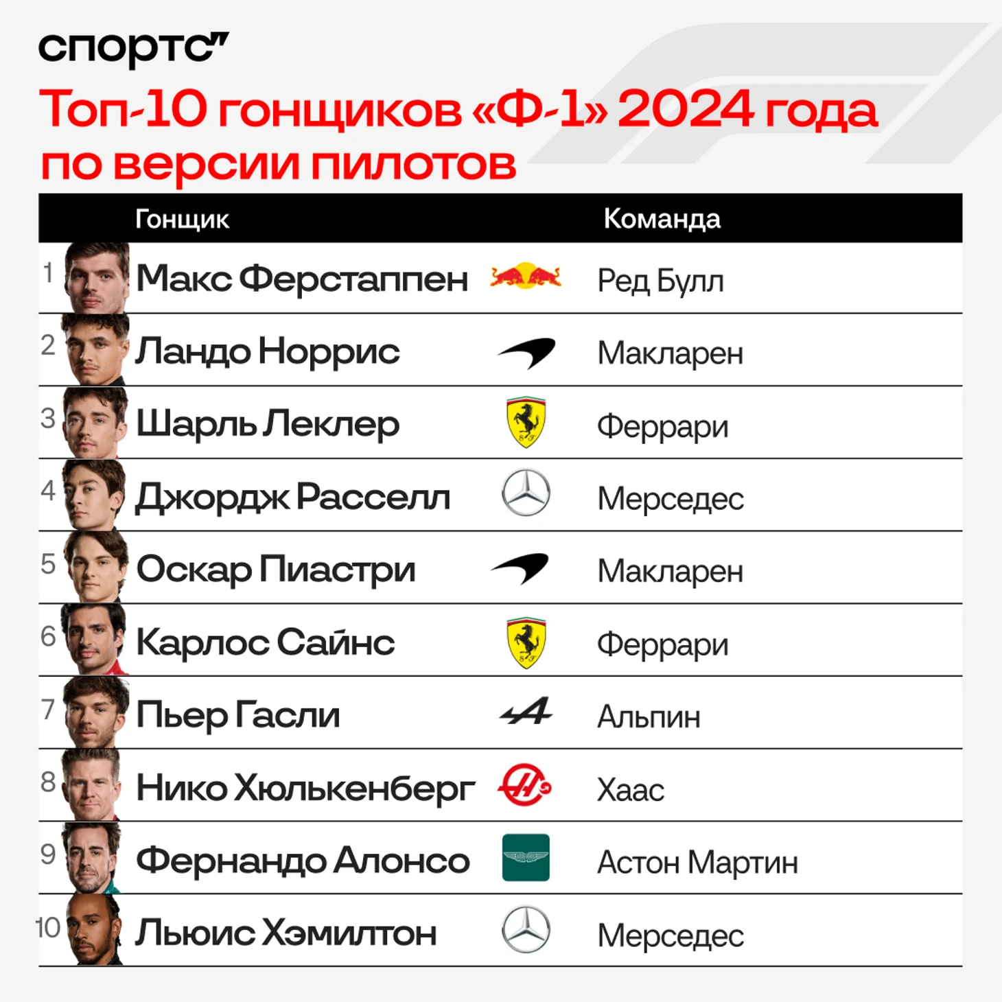 Топ гонщиков «Ф-1» от пилотов и шефов: одно разногласие в пятерке, как же низко Хэмилтон!