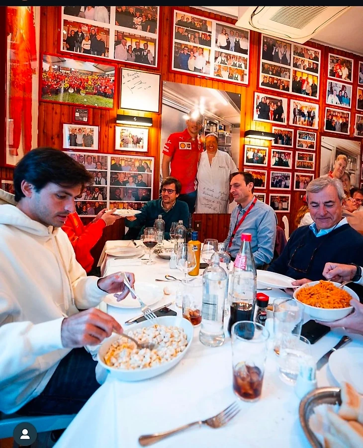 Но на самом деле вечер завершился не на трассе, а в ресторане: это культовое место в Маранелло, которое в разные годы посещали все легендарные гонщики «Феррари».