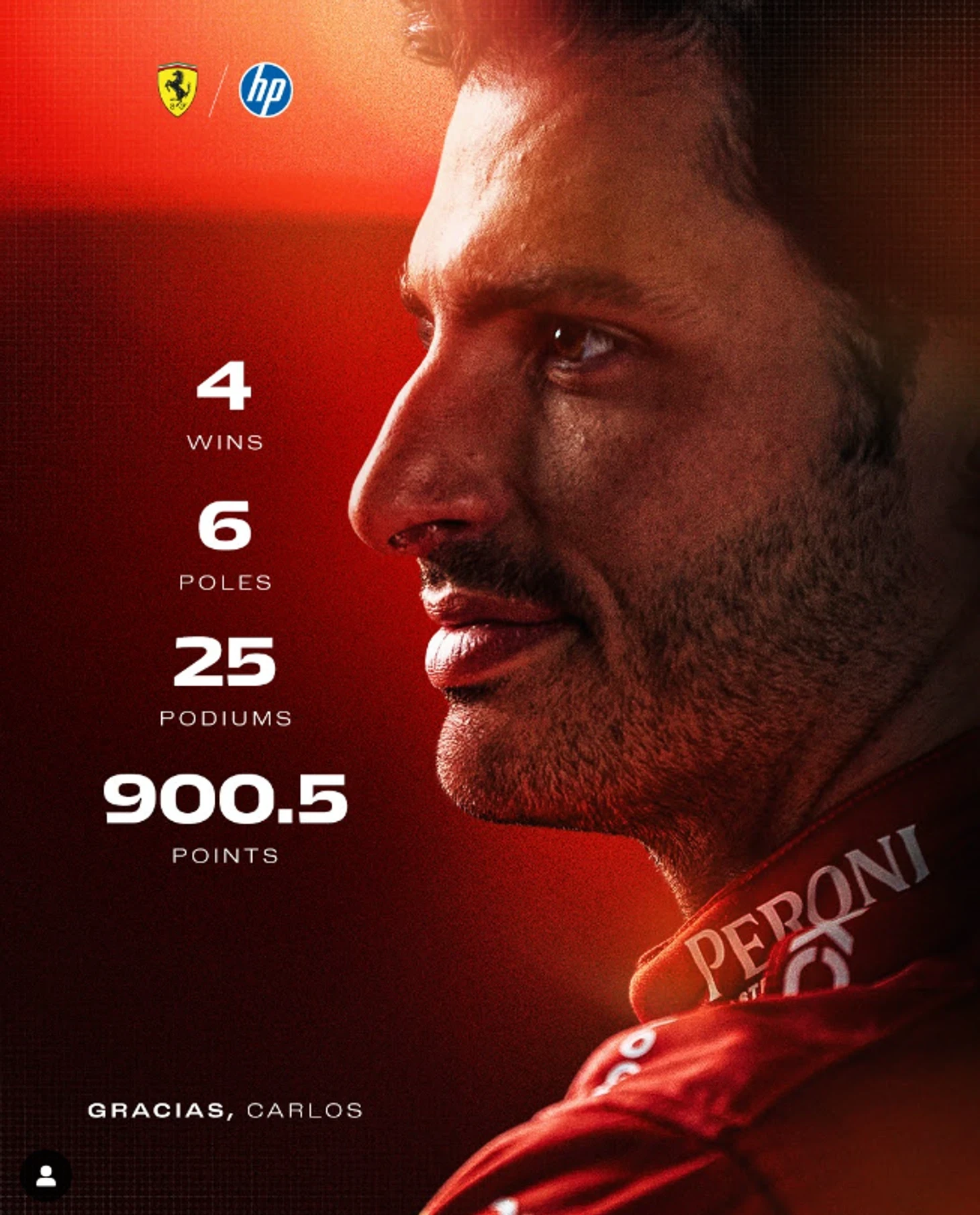 «Четыре года незабываемых моментов, праздника, великих сражений на пути и бесценных уроков. Эти воспоминания останутся со мной навсегда. Спасибо, «Феррари», − написал Карлос за несколько дней до последнего Гран-при в алом болиде. Парни из Маранелло попрощались с ним триумфальным видео.
