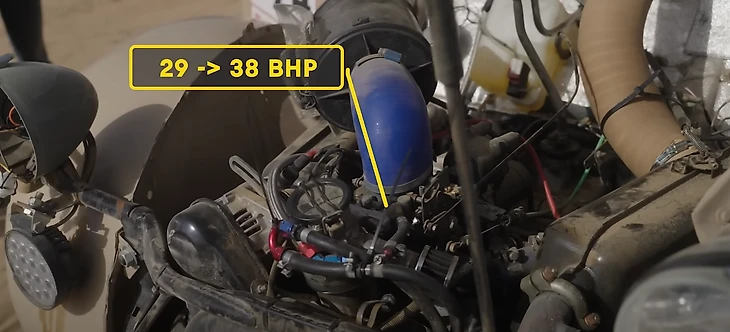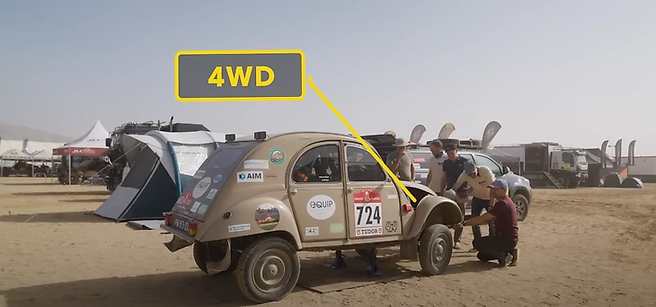 «Что мы модифицировали? Мотор – с 29 л.с. до 38 л.с., – пояснил владелец болида под №724. – Теперь сможем забираться на дюну! Мотор – рядный 2-цилиндровый, масса – 740 кг.
