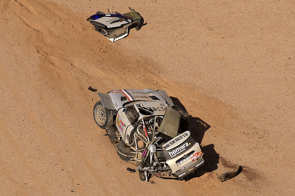 А это – растерзанная «Дакаром» машина еще одного фаворита Жерлена Шишери. Один из самых пугающих крэшей – как минимум итоговым видом.